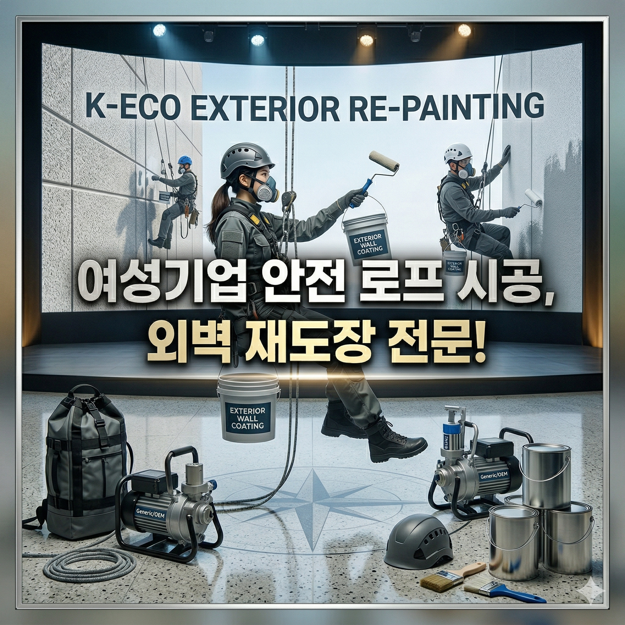 한국환경공단 외벽 재도장, 여성기업의 안전한 로프 시공 전문!